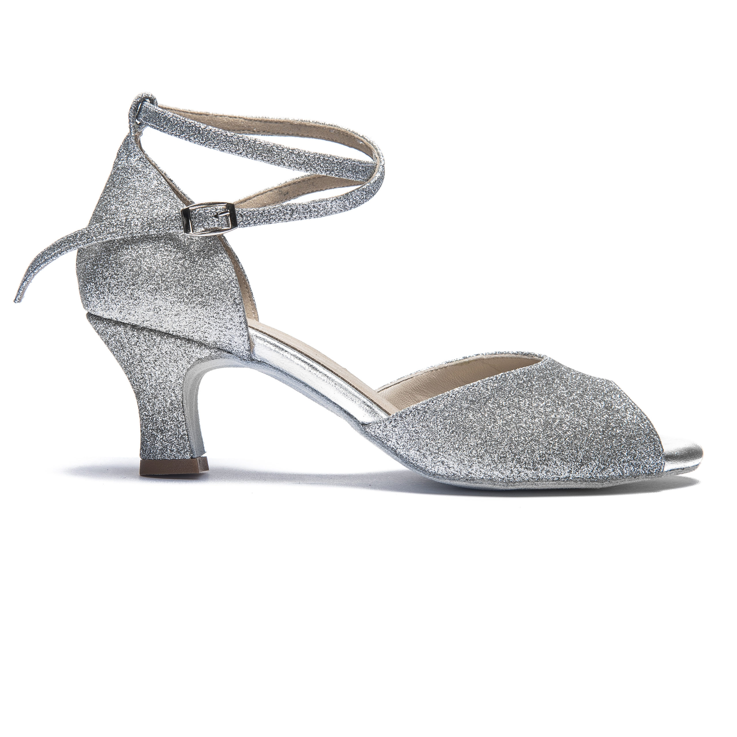 Whether at prom or dance class, this shoe will fit your evening gown perfectly. This dance shoe has an adjustable cross strap that can be shortened individually to the width you need.