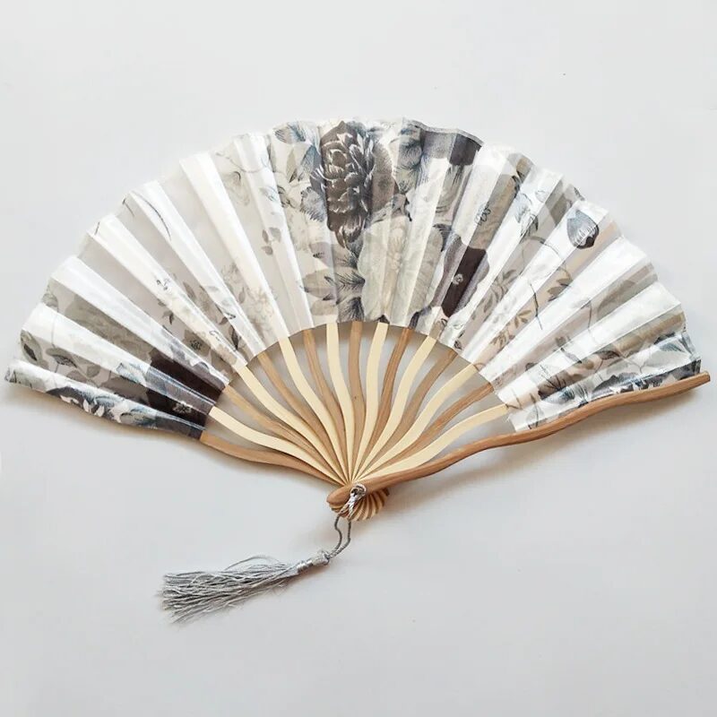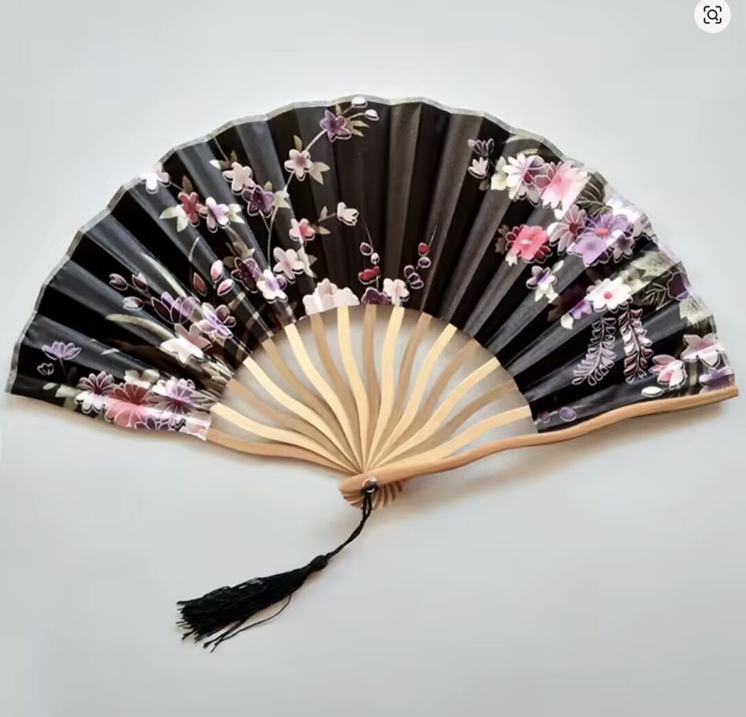 IDV2: Håndvifte i bambus med Kinesisk/Japansk blomstermotiv