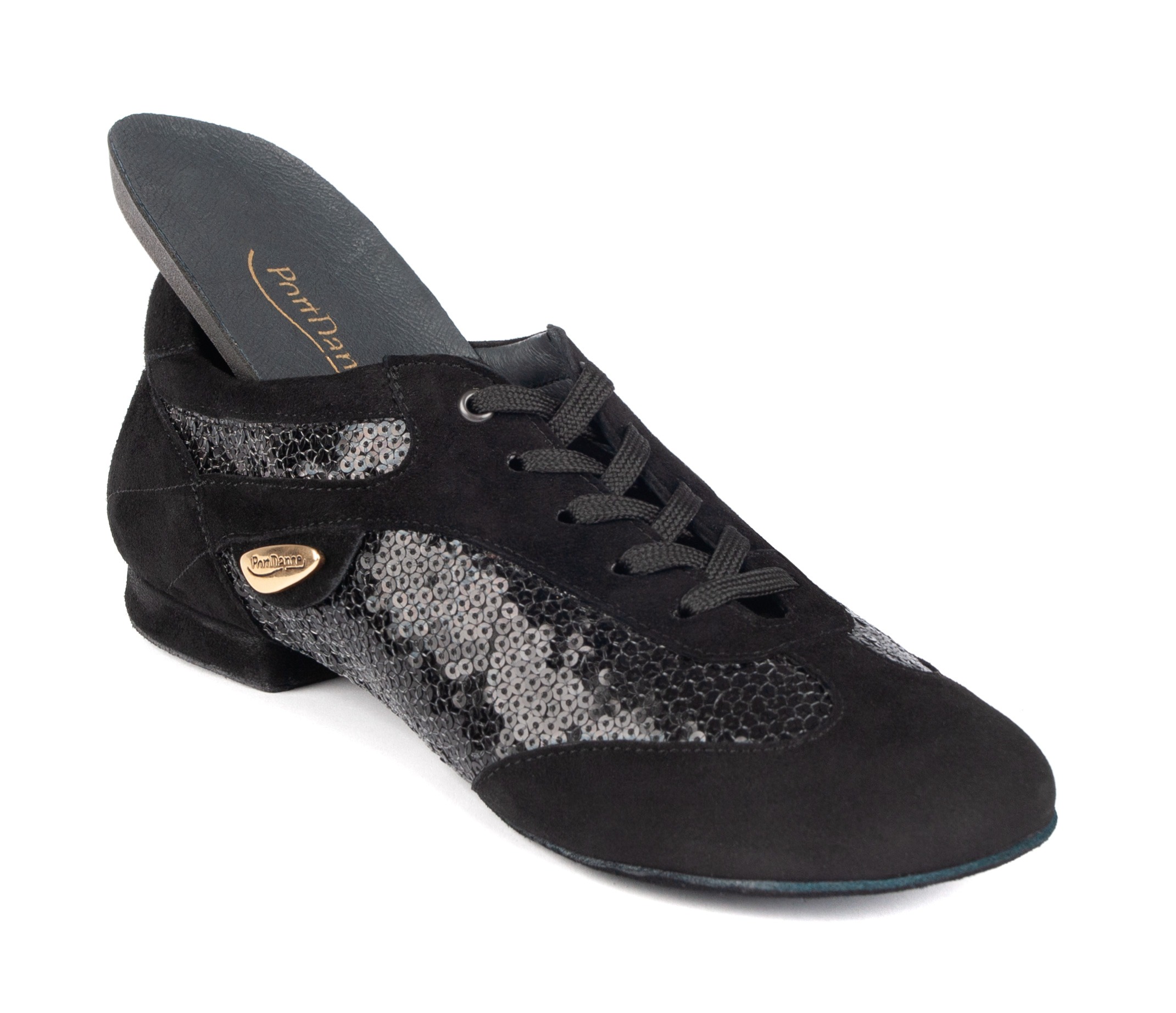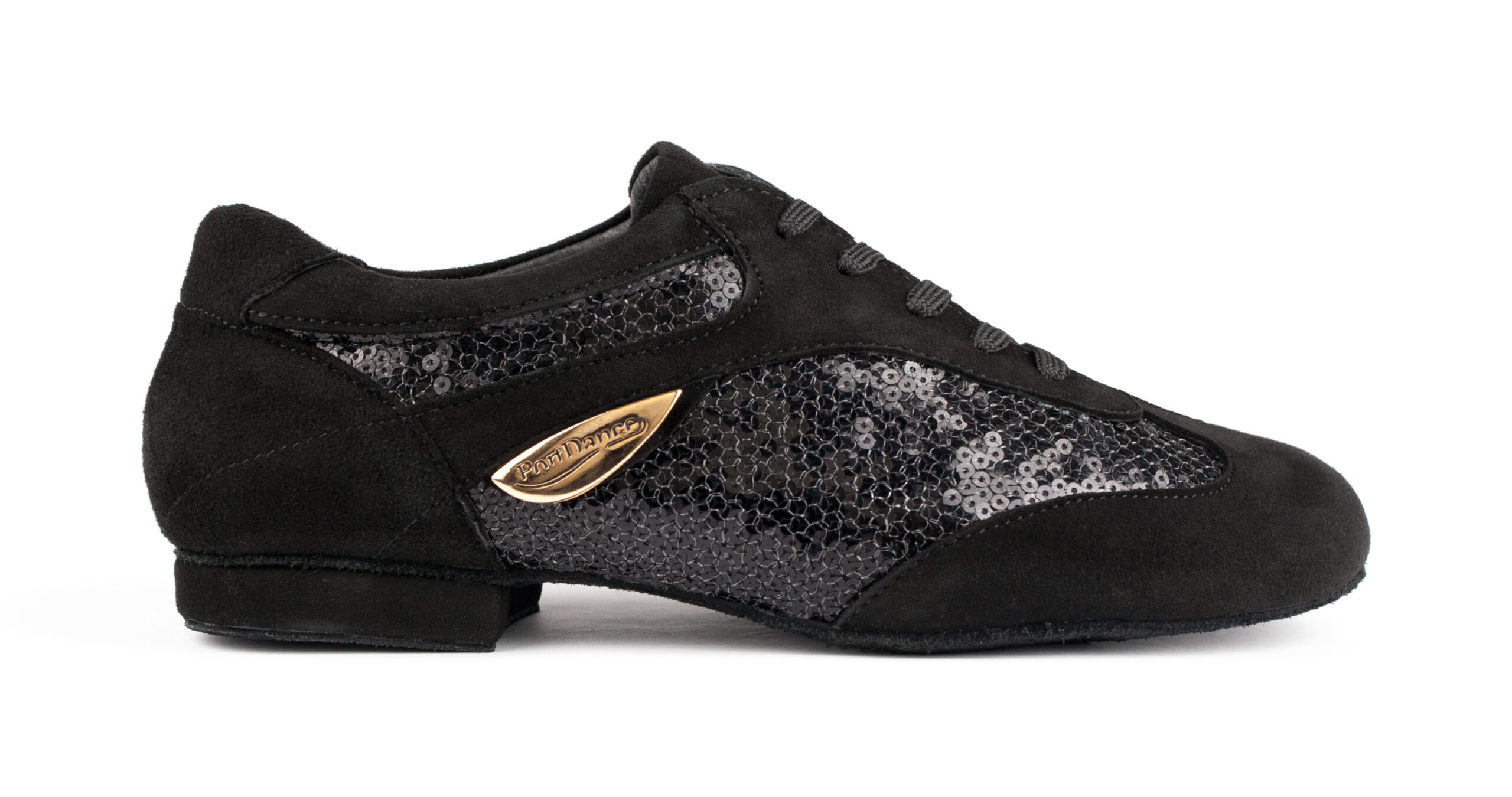 Sorte sneaker’s i Nubuck-skinn og «glam»