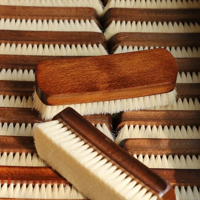 Skobørste med myke ullhår for renhold og polish av skinnsko og støvler.